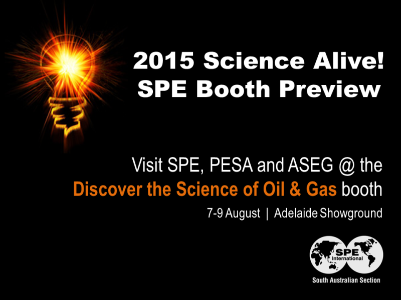 Don’t forget, SPE will be at the ‘Discover the Science of Oil & Gas’ booth, being shared with PESA and ASEG. Bring your kids and come see us!