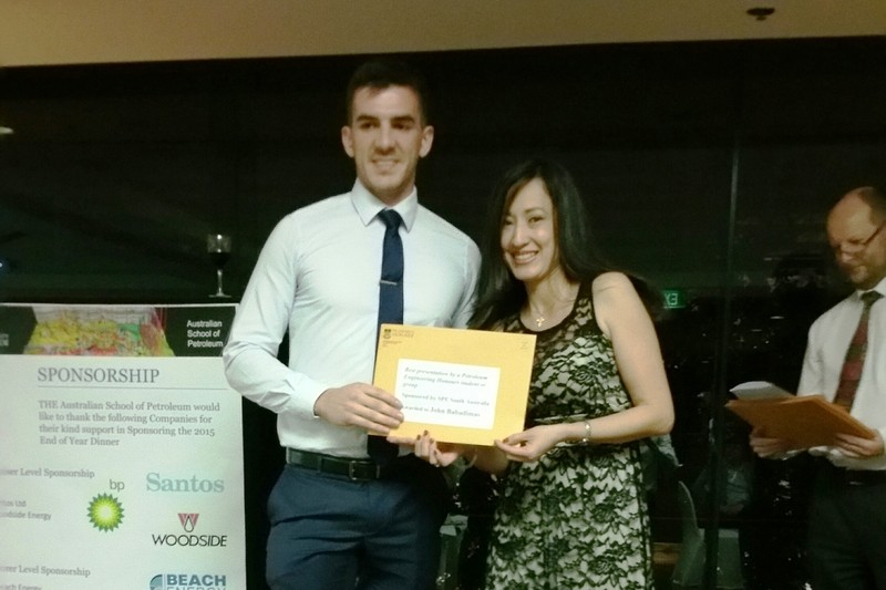 The SPE South Australian Section congratulates Australian School of Petroleum (ASP) student John Babadimas, for being awarded the 2015 SPE Prize for the Best Honours Project Presentation by Petroleum Engineering Students.
